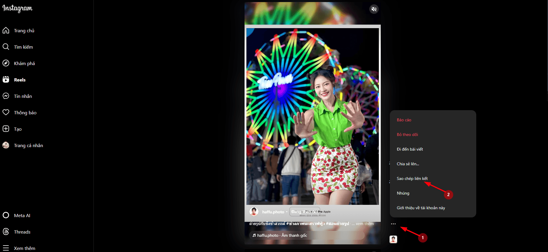 Tải video Instagram reels : bạn hãy lấy link như sau